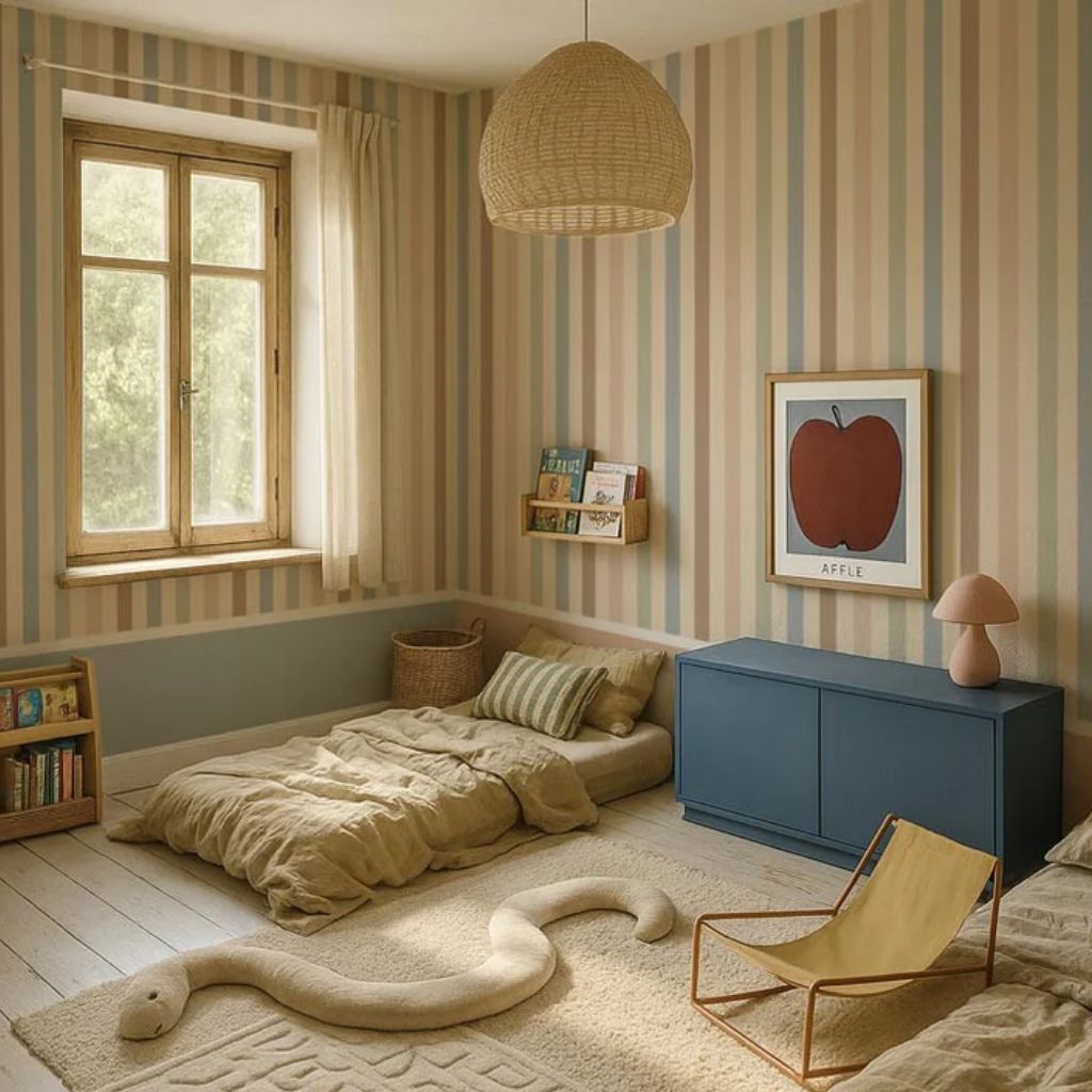 Avec ses rayures fines de 5 cm, il est particulièrement adapté pour agrandir visuellement les petits espaces et créer une atmosphère harmonieuse et lumineuse. Un choix parfait pour un décor raffiné et moderne. 🏡