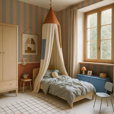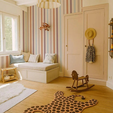 Créez une atmosphère douce et apaisante avec notre papier peint à rayures. 🎨 Ses quatre couleurs harmonieuses — beige, cappuccino, bleu...