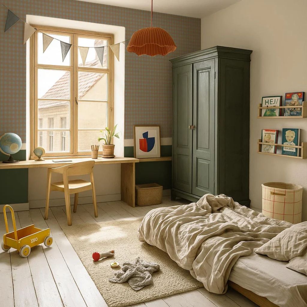 Este papel de parede combina na perfeição com painéis de madeira ou móveis claros. Imagine-o num quarto, realçado por um dossel branco ou creme, para criar um ambiente suave e elegante. 🏡