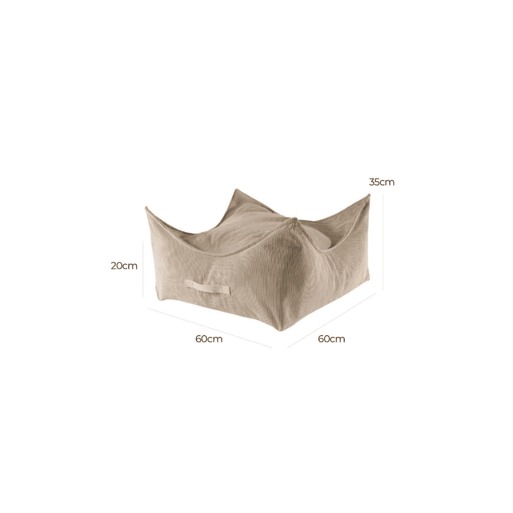 Conçu pour éveiller les sens, son revêtement en "Corduroy" offre une texture agréable au toucher qui stimule la curiosité des enfants. Léger et ergonomique, ce pouf encourage l'autonomie : votre enfant peut s'y installer seul, le transformer en île déserte ou en quartier général, favorisant ainsi le jeu libre et l'imagination.