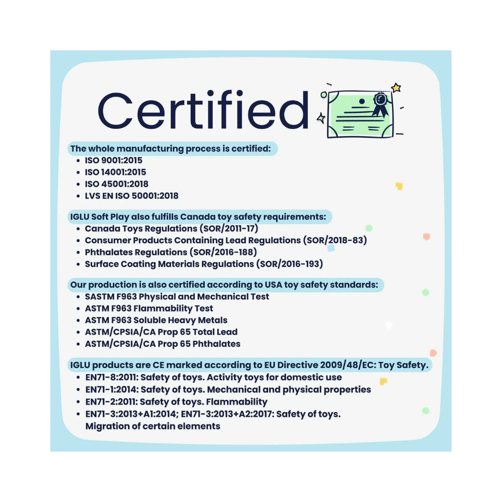 Conçu pour accompagner votre enfant de 9 mois jusqu'à 5 ans, ce parcours évolutif stimule aussi bien l'éveil sensoriel que la créativité. Un espace de jeu sécurisé et joyeux qui canalise l'énergie et encourage l'imagination.